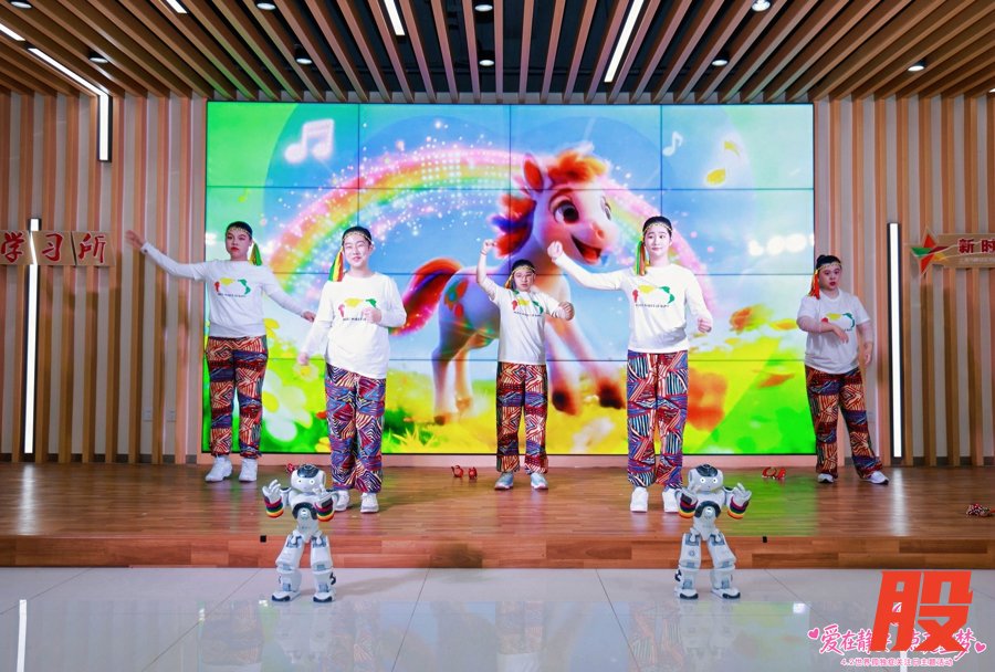 活动现场,4台NAO机器人在多个场景与嘉宾和孩子们互动,让大家近距离感受科技的乐趣。小马过河的孩子们带来的《快乐小马》+《吉量》歌舞表演热力奔放,赢得阵阵掌声。舞台上,机器人NAO与孩子们默契共舞。今年是马年,孤独症青少年绘制了十幅福马绘画作品,承载着对吉祥安康的美好祈愿,这些充满想象力的福马作品也在大屏上呈现。